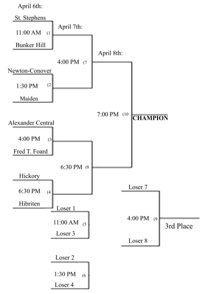 This year’s field features six Catawba County teams: Bunker Hill, Fred T. Foard, Hickory, Maiden, Newton-Conover, and St. Stephens. Joining them are Alexander Central, Hibriten. Alexander Central enters the tournament as the defending 2025 champion.